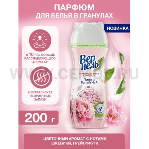 Теги: Вернель кондиционер-парфюм в гранулах 200г Пион и белый чай, LAB Industries (Laundry), Антистатик. Кондиционер для белья
