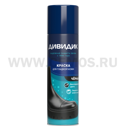 Краска для гладкой кожи Дивидик обновляет и освежает цвет изделий, предохраняет изделия от намокания, предотвращает образование пятен и солевых разводов.